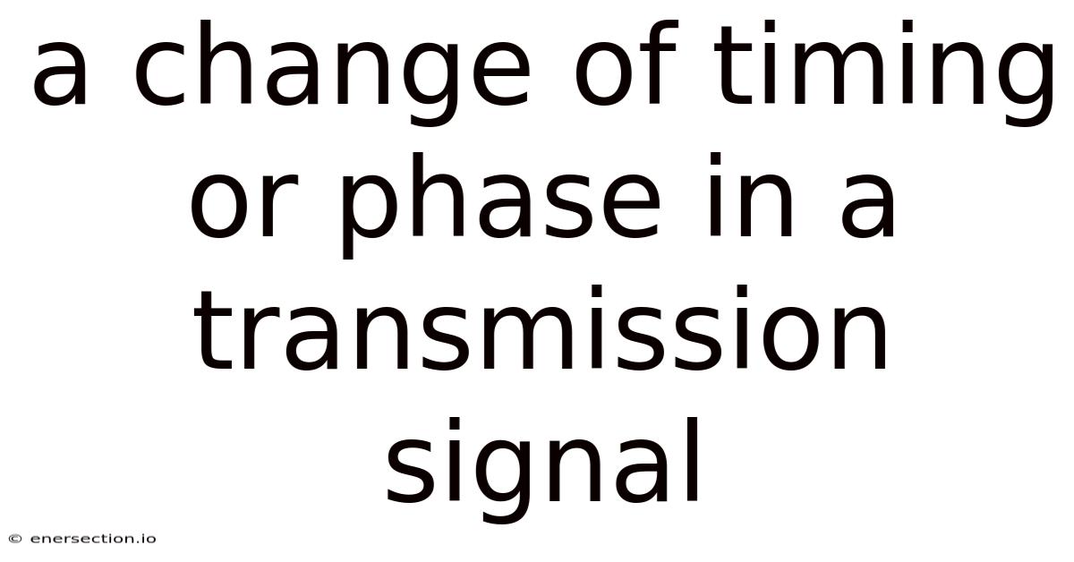 In modern communication systems, timing and phase are two fundamental attributes of any transmitted signal. Worth adding: whether the medium is copper, fiber‑optic, wireless, or satellite, engineers must detect, compensate, and sometimes deliberately introduce timing or phase variations to meet system requirements. A change of timing (often called a timing offset or jitter) and a phase shift can dramatically affect the integrity, synchronization, and overall performance of a transmission link. This article explores the nature of timing and phase changes, their causes, how they are measured, and the techniques used to mitigate or exploit them in practical transmission scenarios The details matter here. But it adds up..