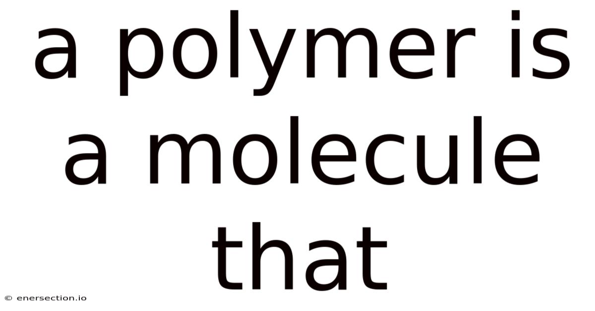 The simple declaration that "a polymer is a molecule that" is a gateway to understanding a world of immense complexity and utility. Polymers are not merely synthetic materials; they are fundamental components of life and the foundation of countless modern technologies. Their ability to be precisely engineered at the molecular level to possess a vast spectrum of properties – strength, flexibility, transparency, biodegradability, conductivity – makes them indispensable. Plus, from the proteins building our bodies to the polymers enabling the digital age, from the sustainable packaging solutions of tomorrow to the advanced materials revolutionizing aerospace and medicine, polymers are truly the molecules that shape our existence. Their study and innovation continue to drive progress across science, industry, and society.