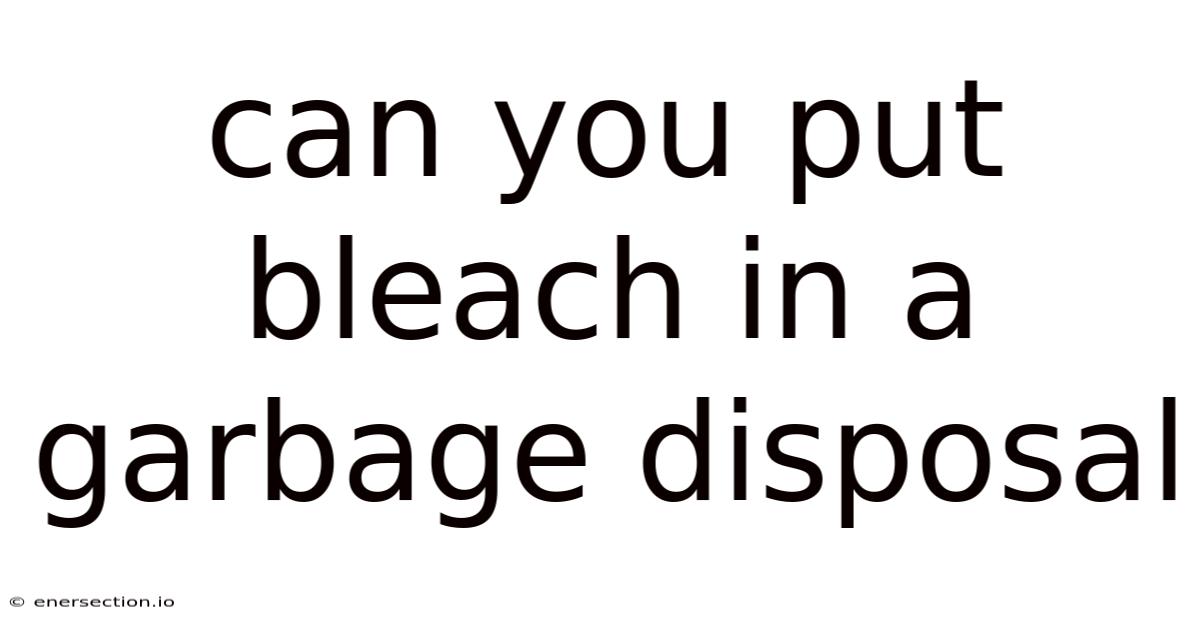 Can You Put Bleach in a Garbage Disposal?