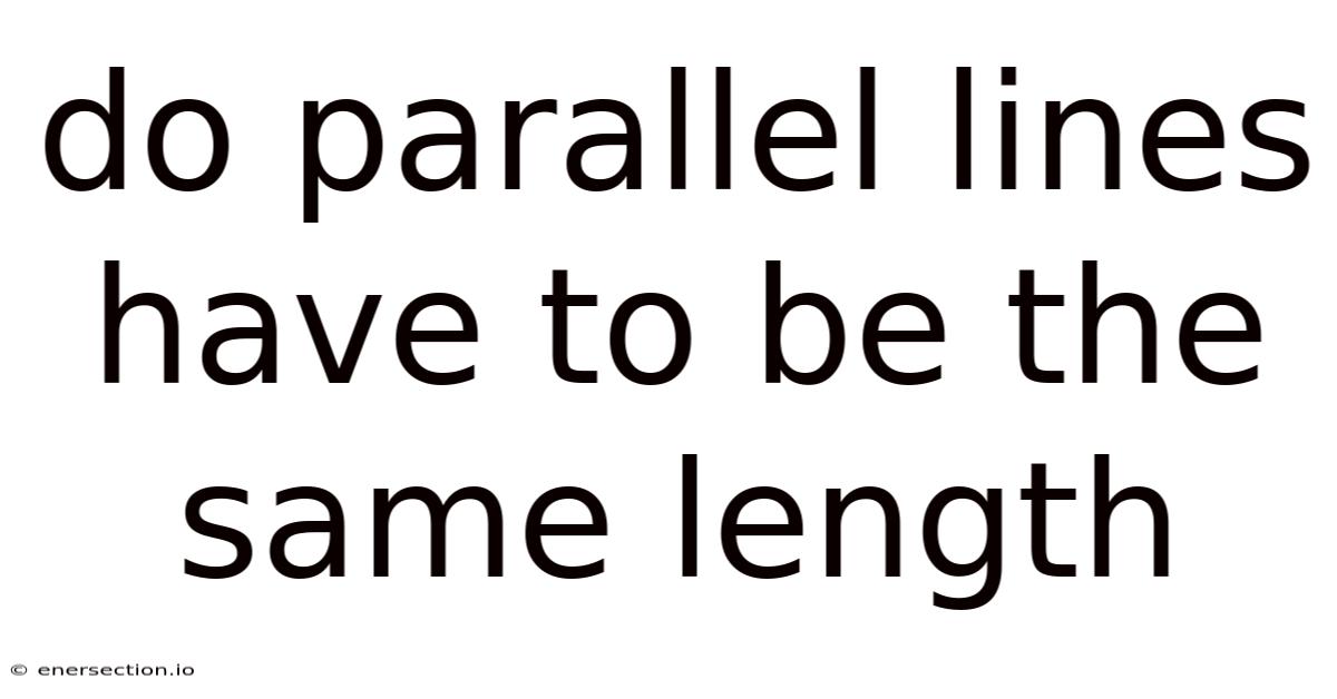 The concept of parallel lines has long intrigued mathematicians, artists, and everyday individuals alike, serving as a foundational element in geometry and design. So to address this inquiry thoroughly, we must dissect the principles that govern parallel lines, explore their significance across disciplines, and examine why deviations from uniformity can lead to unexpected consequences. The very notion of parallelism, though seemingly universal, hinges on precise definitions and contextual applications, making its validity contingent upon the framework within which it operates. Yet, a common misconception persists: Do parallel lines have to be the same length? This question, though seemingly simple, unravels layers of mathematical precision, historical context, and everyday relevance, challenging assumptions about consistency and utility. While the term “parallel lines” immediately evokes images of straight paths diverging at right angles or maintaining a consistent angle, its application extends far beyond abstract theory into practical realms. Understanding these nuances requires a multidisciplinary approach, blending theoretical knowledge with practical observation to grasp why maintaining consistency in length is not merely a preference but a necessity Easy to understand, harder to ignore. But it adds up..