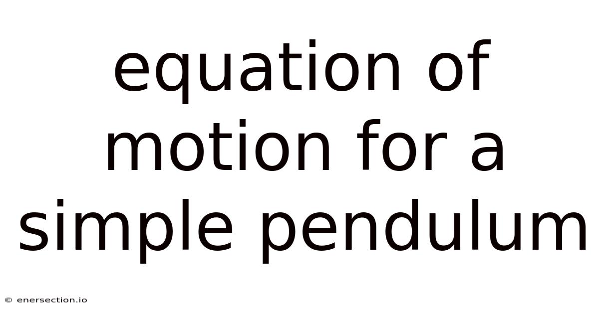 Equation Of Motion For A Simple Pendulum