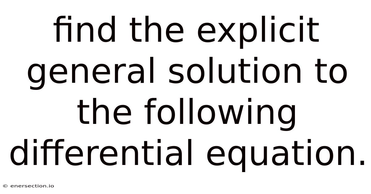 Find The Explicit General Solution To The Following Differential Equation.