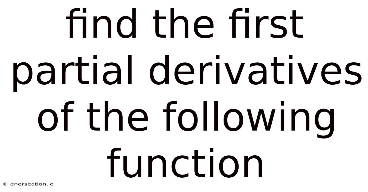 Understanding how to find the first partial derivatives of the following function is a cornerstone of multivariable calculus. Whether you are a university student tackling homework, an engineer modeling physical systems, or a data scientist exploring optimization, the ability to compute partial derivatives equips you with a powerful analytical tool. This article walks you through the conceptual background, a clear procedural roadmap, illustrative examples, and answers to frequently asked questions, all while keeping the explanation accessible and SEO‑friendly.