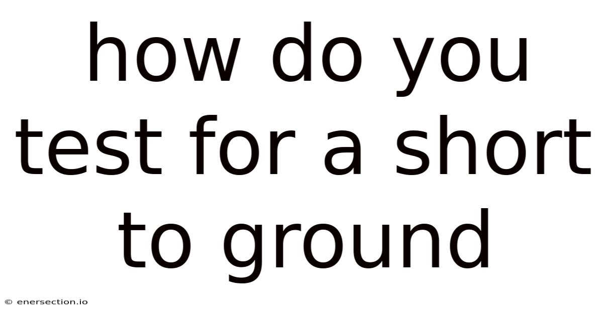How Do You Test For A Short To Ground