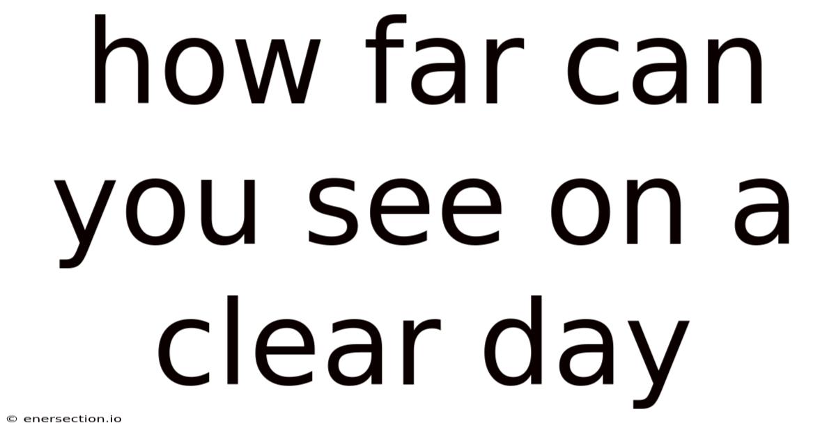 The distance one can see on a clear day is a convergence point for countless variables: the curve of the Earth, the purity of the air, the angle of the sun, the health of the eye, and the presence of any technological mediator. Day to day, it is a dynamic limit, shifting with weather, altitude, and even the observer’s own physiology. But understanding these factors transforms a simple glance into a lesson in planetary science and sensory awareness. In real terms, it reminds us that what we perceive as the "edge" of the world is often a fluid boundary, negotiated between light and matter. When all is said and done, the true measure of visibility may not be in miles, but in the depth of appreciation it cultivates—for the transparent miracle of a clean atmosphere and the profound, fragile connection between our vantage point and the vast world unfolding before us. To see clearly and far is to participate in a quiet, ongoing dialogue with the environment, a dialogue that begins with the simple, profound act of looking.