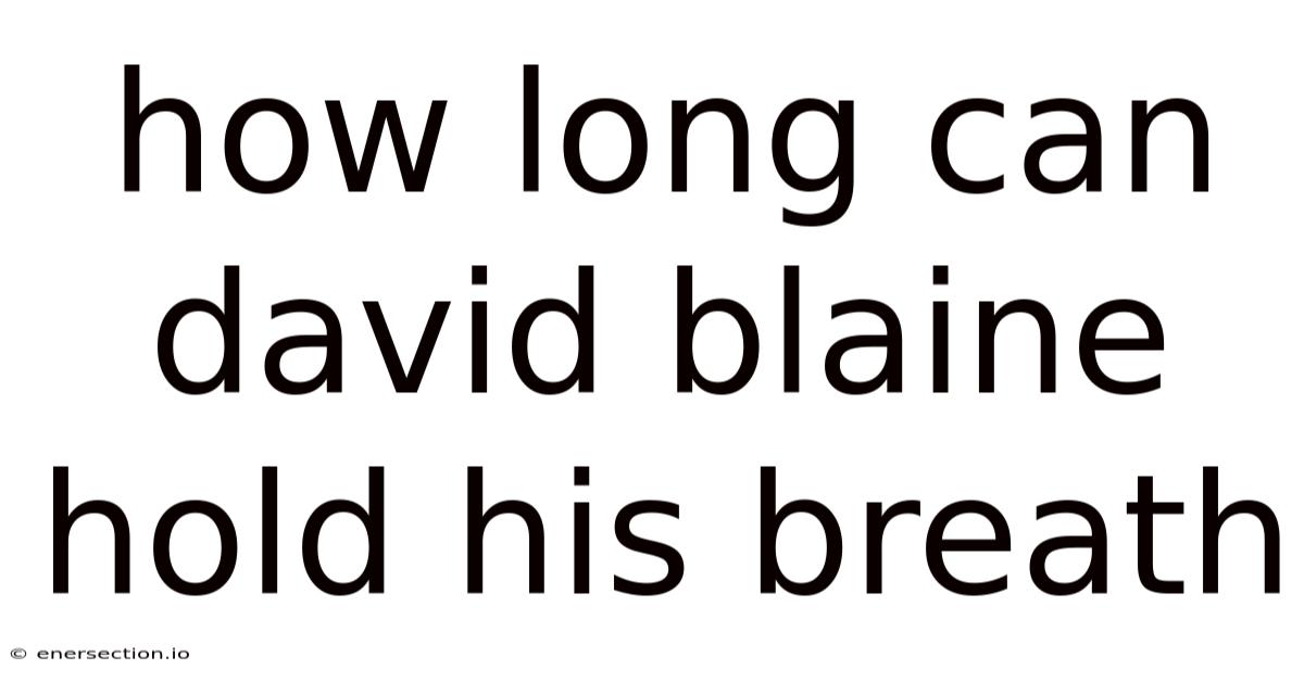 Understanding how long David Blaine can hold his breath is a fascinating topic that blends science, endurance, and human capability. Which means whether you're curious about the limits of human respiration or interested in the thrilling world of stunt performers, this article will provide you with a comprehensive explanation of the factors that influence breath-holding duration. By exploring the science behind this skill, you’ll gain a deeper appreciation for the physical demands involved in such feats.