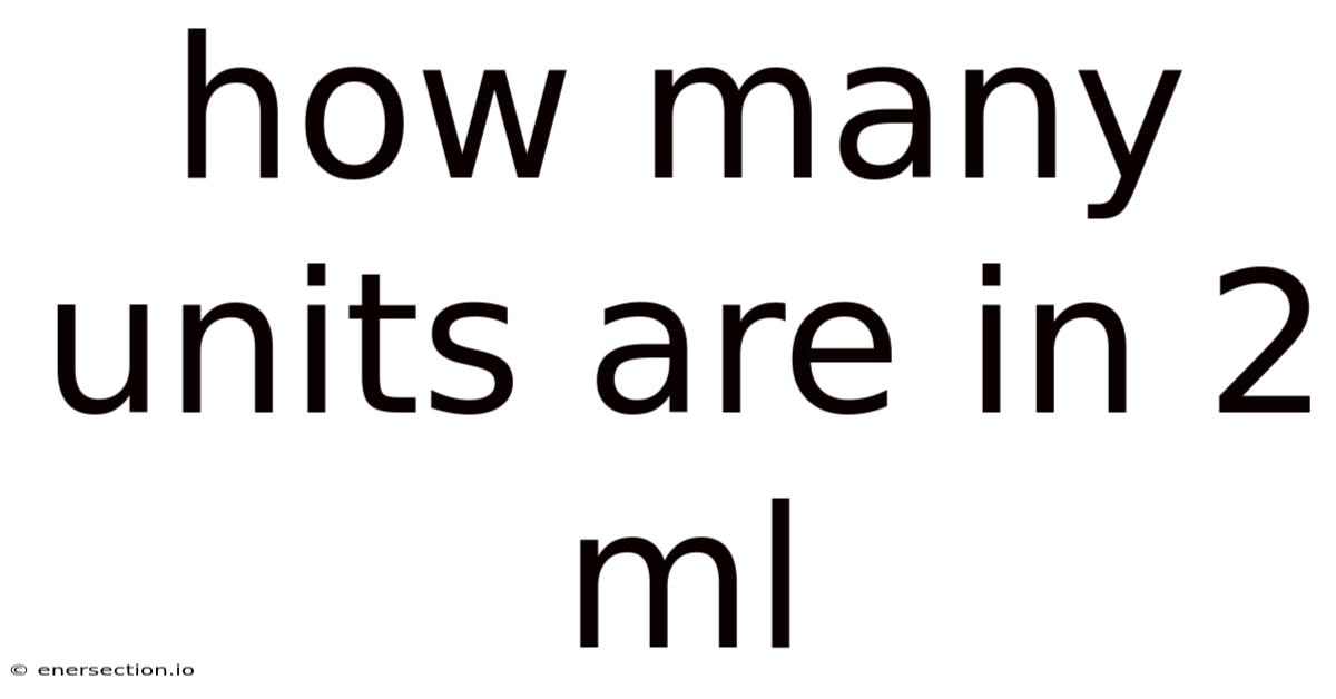 2 milliliters (ml) of a substance does not universally equate to a fixed number of "units." The concept of "units" is context-dependent, referring to standardized measurements used in specific fields like pharmacology, nutrition, or alcohol content. There is no single conversion factor from milliliters to units applicable across all scenarios. Understanding the specific "unit" system being referenced is crucial for any meaningful answer Simple as that..
