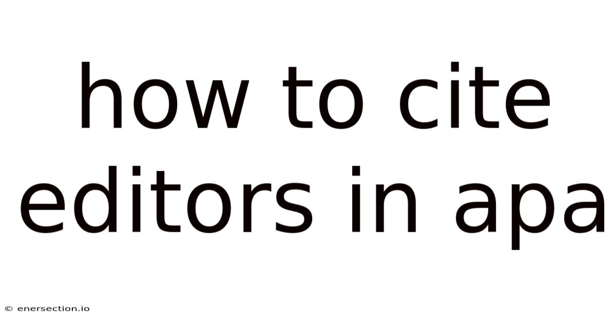 How To Cite Editors In Apa