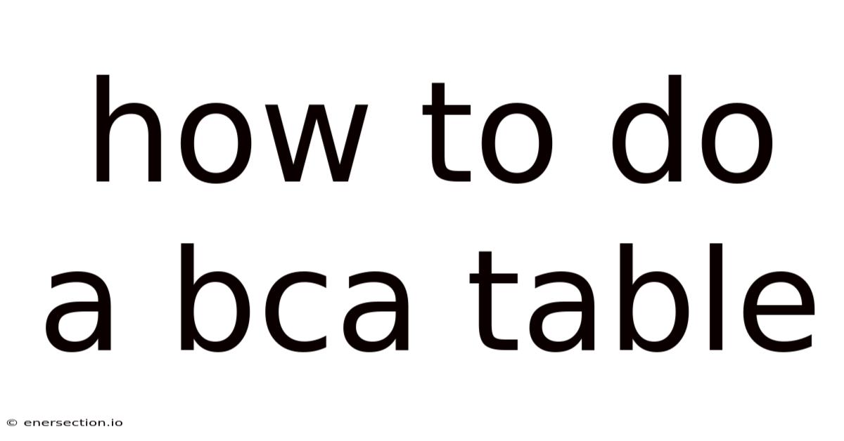 Step‑by‑Step Guide to Building a BCA TableBelow is a practical, ordered approach you can follow. Each step includes tips to ensure accuracy and relevance.