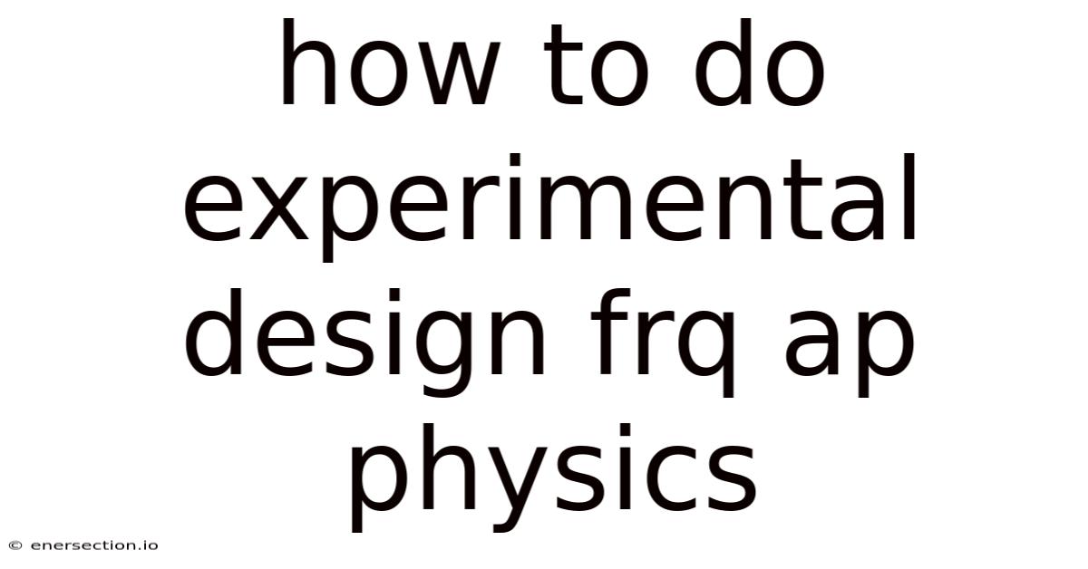 Designing a strong experimental designfree-response question (FRQ) response for AP Physics requires a clear understanding of the scientific method and the ability to articulate your reasoning precisely. This guide breaks down the process into essential steps, ensuring your answer stands out to the graders And that's really what it comes down to..
