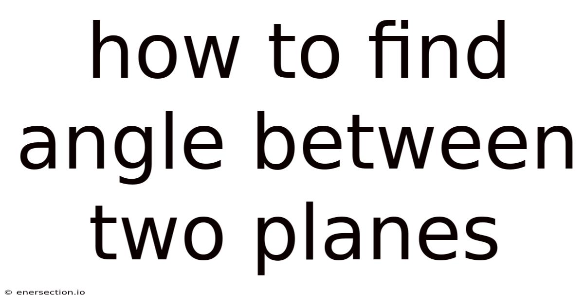 How To Find Angle Between Two Planes