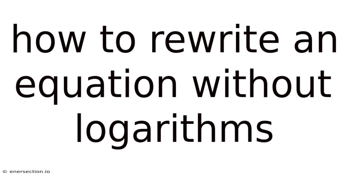 First, let’s clarify what it means to rewrite an equation without logarithms. This involves simplifying the expression by eliminating the logarithmic terms through various algebraic operations. Here's a good example: if you encounter an equation containing a logarithm of a product or a power, you can often use properties of logarithms to simplify it. That said, the goal here is to achieve a solution that does not depend on logarithmic functions Simple as that..