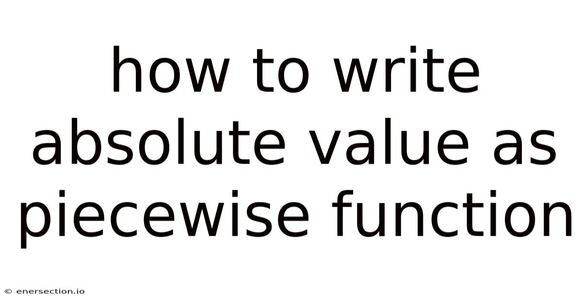 How To Write Absolute Value As Piecewise Function