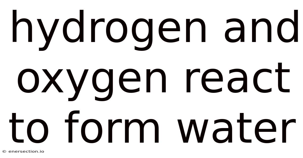 Hydrogen And Oxygen React To Form Water