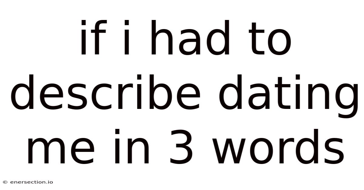 If I Had To Describe Dating Me In 3 Words