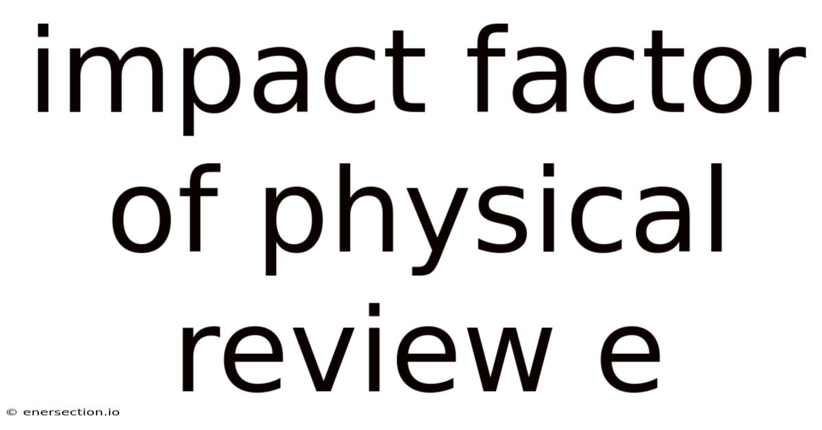Impact Factor of Physical Review E: A Comprehensive Analysis of Its Significance and Influence in Physics Research