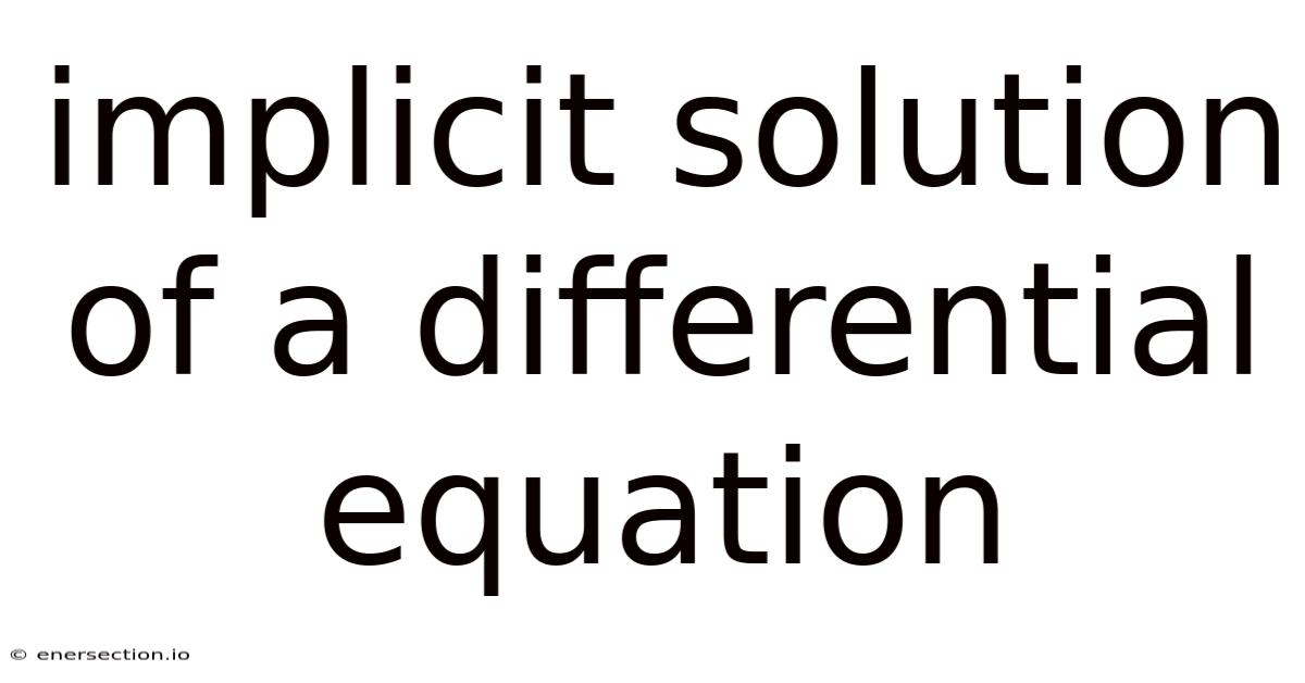 An implicit solution of a differential equation is a relation between the variables that satisfies the equation but is not solved for the dependent variable. This means that the solution is given in the form F(x, y) = C, where F is some function, x and y are the variables, and C is a constant. Implicit solutions often arise when it is difficult or impossible to solve the differential equation explicitly. They provide valuable information about the behavior of the system described by the equation.