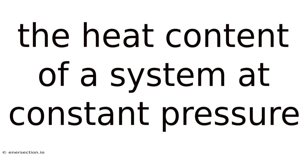 The heat content ofa system at constant pressure, known as enthalpy (H), is a fundamental thermodynamic concept crucial for understanding energy changes in processes occurring under constant pressure conditions. This concept bridges the gap between internal energy and the practical energy transfer involved in chemical reactions, phase changes, and other physical transformations. Understanding enthalpy is essential for analyzing everything from industrial chemical processes to weather patterns and biological metabolism. This article walks through the definition, significance, calculation, and applications of enthalpy, particularly focusing on its role when pressure remains constant.