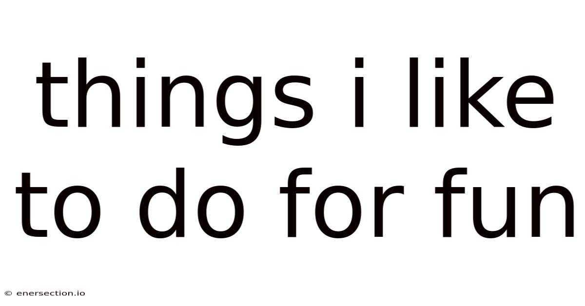 Things I Like To Do For Fun