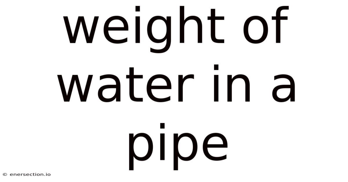 Understanding the Weight of Water in a Pipe: A Comprehensive Guide