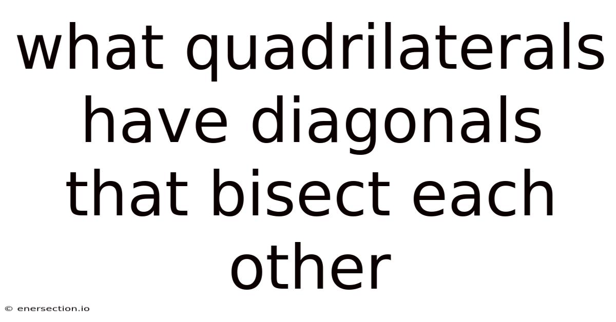 Quadrilaterals that have diagonals that bisect each other form a fundamental category in Euclidean geometry, and recognizing them is essential for solving many spatial problems. When the two diagonals of a quadrilateral intersect at their midpoints, each diagonal cuts the other into two equal segments; this property is not only geometrically elegant but also serves as a defining characteristic for several important shapes. In this article we will explore the definition, the underlying reasoning, the specific types of quadrilaterals that satisfy this condition, and practical applications that reinforce the concept It's one of those things that adds up..