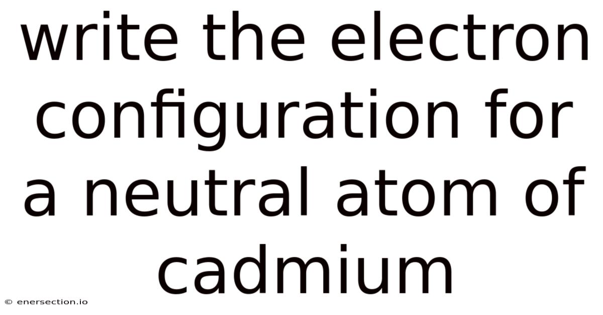 The electron configuration of an element describes the arrangement of its electrons in atomic orbitals, following specific rules dictated by quantum mechanics. Because of that, this process not only clarifies how electrons occupy energy levels but also explains why cadmium exhibits certain chemical properties. Here's the thing — for a neutral atom of cadmium (Cd), which has an atomic number of 48, determining its electron configuration is a fundamental exercise in understanding atomic structure. In this article, we will explore the methodology to write the electron configuration for cadmium, the scientific principles behind it, and address common questions related to this topic.